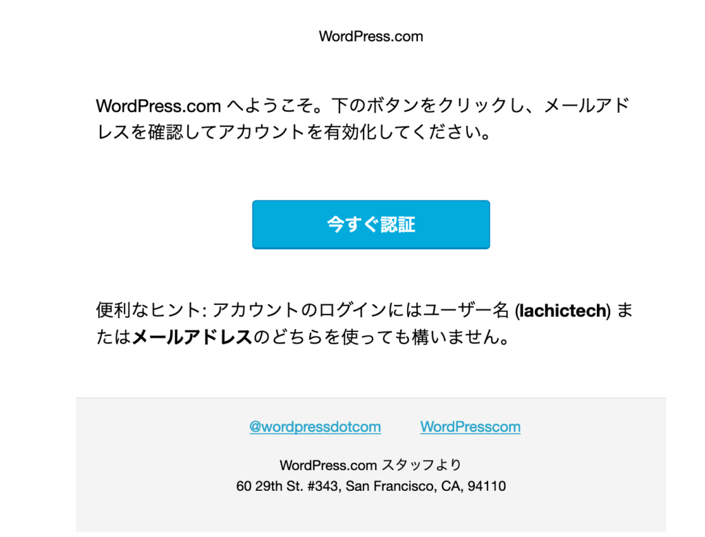 メールアドレスを新規登録すると、入力したメールアドレス宛に確認メールが届きます。「今すぐ認証」を押しましょう。これでアカウントの作成が完了します。