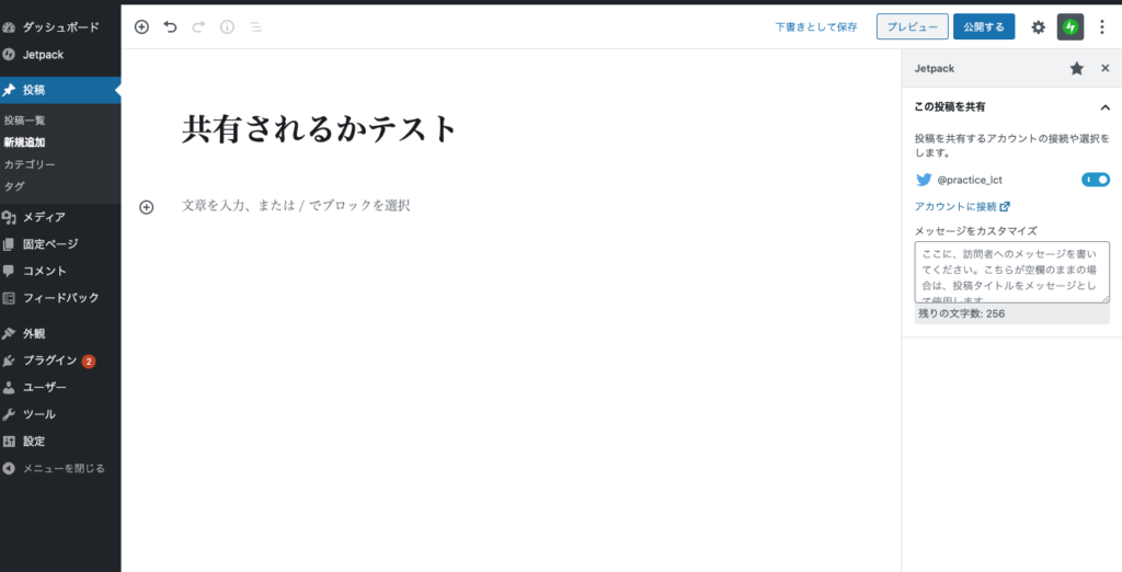 JetpackはFacebook、Twitterであれば自動投稿に対応しています。そのほかのSNSと連携したい場合は、ほかの対応している自動投稿プラグインを選ぶ必要があります。