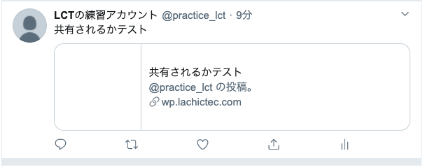 Twitterに投稿されるとこのようにテキストと投稿された記事が添付されます。アイキャッチ画像を設定しているとここに画像が入り、よりなんの記事なのかがわかりやすくなります。